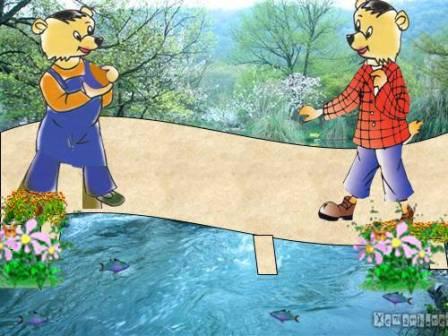 Chó con bảo: “Bác gấu ơi, đến ngồi chỗ của cháu đi bác!”.